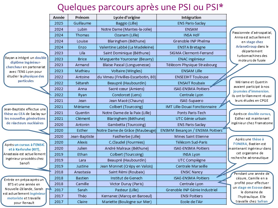Le devenir de nos étudiants au Lycée Baggio PCSI – PSI – PSI* Pourquoi faire une PCSI puis une PSI ? Une semaine en PCSI ou en PSI Les écoles d’ingénieur après une PSI Les résultats des concours en PSI au lycée Baggio Le devenir de nos étudiants au Lycée Baggio Les matières littéraires Actualité – CPGE Témoignage – CPGE Contacts facebookYouTube